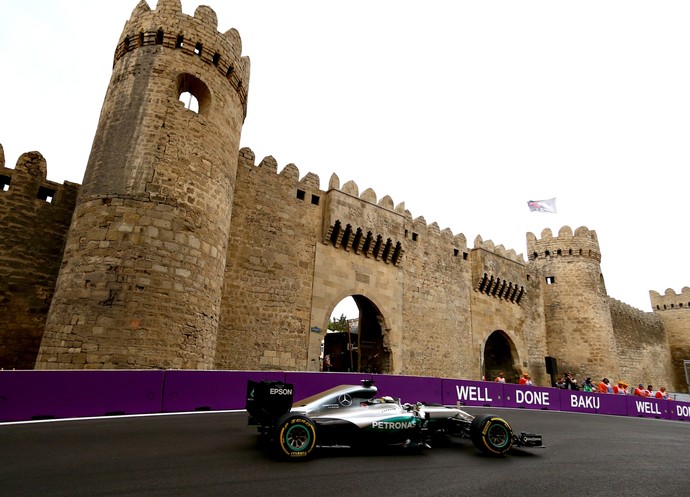 Hamilton repete dose no 2º treino livre em Baku. Rosberg enfrenta problemas
