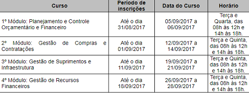 A capacitação faz parte do projeto de modernização da gestão financeira, baseada no novo Manual de Despesas do município, elaborado em parceria com o Banco Interamericano de Desenvolvimento (BID) com objetivo aprimorar os processos de compras e serviços da administração municipal e garantir maior controle orçamentário e financeiro. Serão 8 turmas e o curso será dividido em quatro módulos: Planejamento e Controle Orçamentário e Financeiro, Compras e Contratações, Gestão de Suprimentos e Infraestrutura e Gestão de Recursos Financeiros.