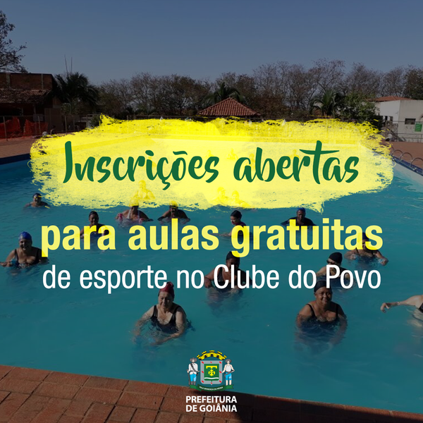 O Clube do Povo, unidade da Prefeitura de Goiânia, coordenado pela Agência Municipal De Turismo Eventos E Lazer (Agetul), está com inscrições abertas para aulas de futebol, natação e capoeira. As atividades gratuitas acontecem nos períodos matutino, vespertino e noturno e podem se inscrever crianças a partir de 8 anos de idade. Os interessados devem procurar a secretaria do clube de segunda a sexta-feira, das 8h às 12h e das 13h às 17h, com documentos pessoais, 1 foto 3x4 e atestado médico. O clube do Povo se localiza na divisa dos setores Alto do Vale e Finsocial, na região Noroeste da capital.