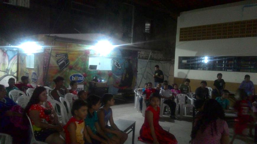 Assim como ele, outras 20 crianças, acompanhadas de seus pais, professores, funcionários e outras pessoas da comunidade presenciaram a primeira atividade do Trailer do Biizu, ou “Biizu Móvel”, como também está sendo chamado veículo de apoio do Projeto de Oficinas da Secom. A sessão, que iniciou às 19h30, recebeu cerca de 70 pessoas que assistiram a exibição do documentário “Nunca Me Sonharam”, filme do Instituto Unibanco, produzido pela Maria Farinha Produções (SP).