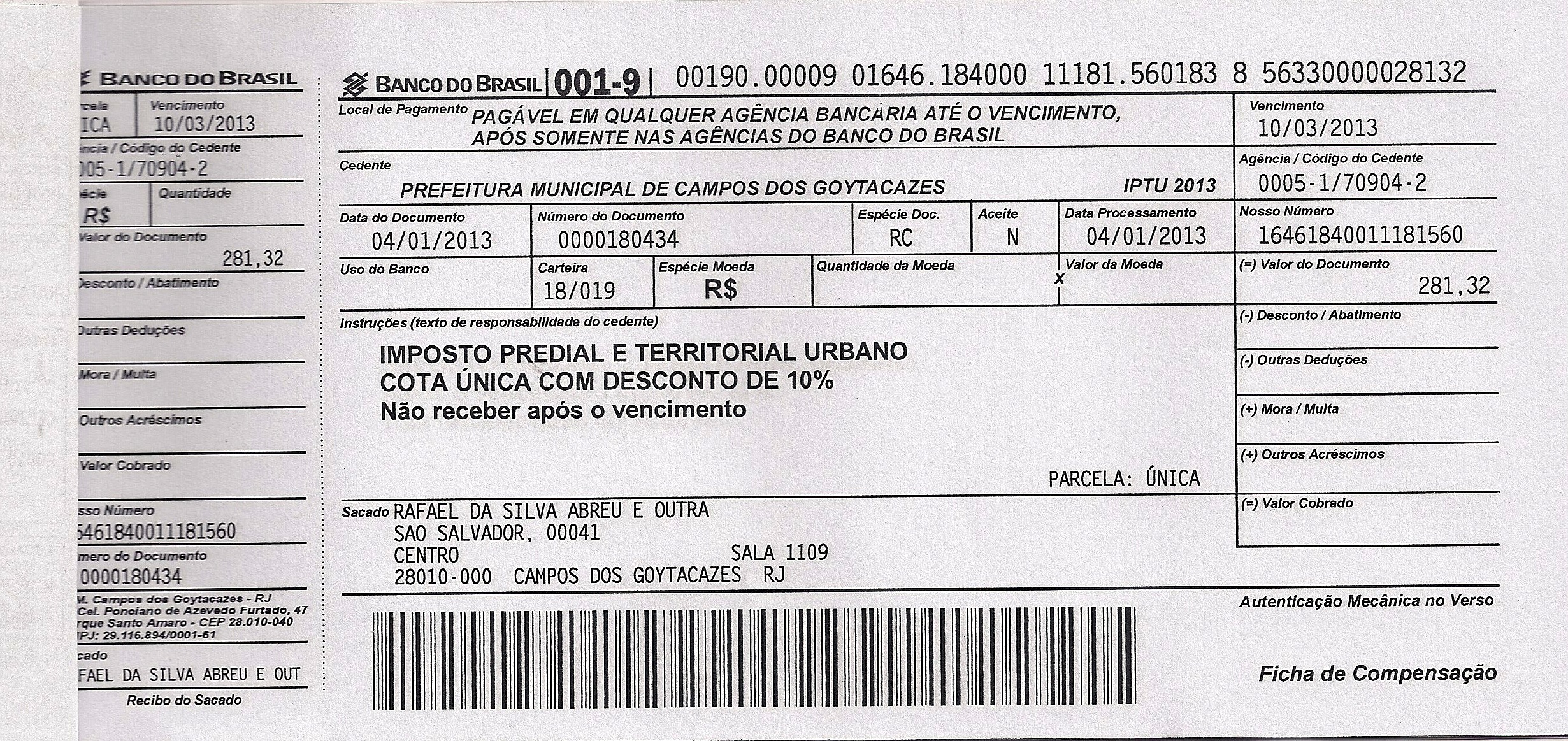 - Serviço (IPTU)