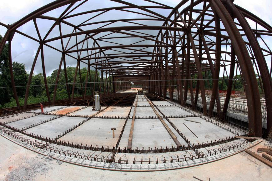 As estruturas foram projetadas para que apenas três eixos de blocos de fundação ficassem sobre a área alagada. “Elas estão projetadas para suportar o esforço de carga através das estruturas metálicas, reduzindo o impacto que seria causado nos lagos pelos processos de fundação e montagem convencionais sobre a água”, detalha Cesar Meira, diretor geral do Núcleo de Gerenciamento de Transporte Metropolitano (NGTM).