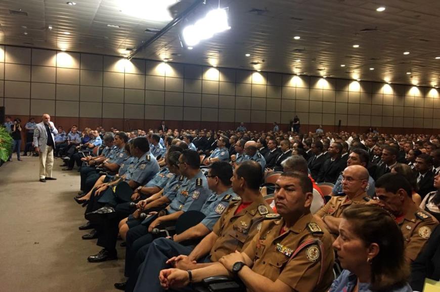 Mais de dois mil alunos dos Cursos de Formação de Oficiais (CFO), de Praças (CFP) e de Adaptação de Oficiais (Cado) participam, neste momento, em diversos municípios, da Aula Inaugural da formação ofertada pela Polícia Militar do Estado. Em Belém, a palestra é ministrada pelo governador do Estado, Simão Jatene, no Hangar.