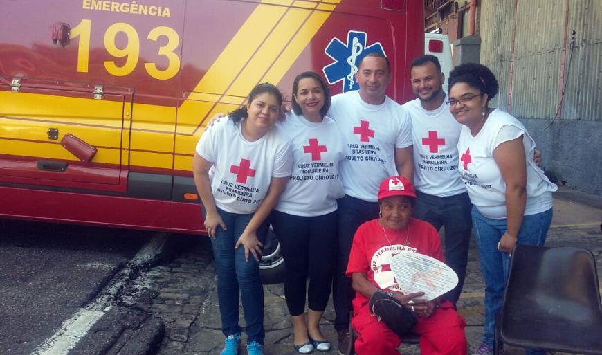 Mais de 20 profissionais da saúde dos hospitais Jean Bitar (HJB), Geral de Tailândia (HGT), Regional Público do Leste (HRPL), em Paragominas; Regional Público do Marajó (HRPM), em Breves; e da Unidade de Alta Complexidade em Oncologia Dr Vítor Moutinho (Unacon), em Tucuruí, atuaram no projeto Círio 2017, em parceria com a Cruz Vermelha do Pará, garantindo assistência em saúde para centenas de romeiros durante a Trasladação do sábado (7) e a grande procissão do Círio, no domingo (8), no Posto de Atendimento da Companhia das Docas do Pará (CDP).