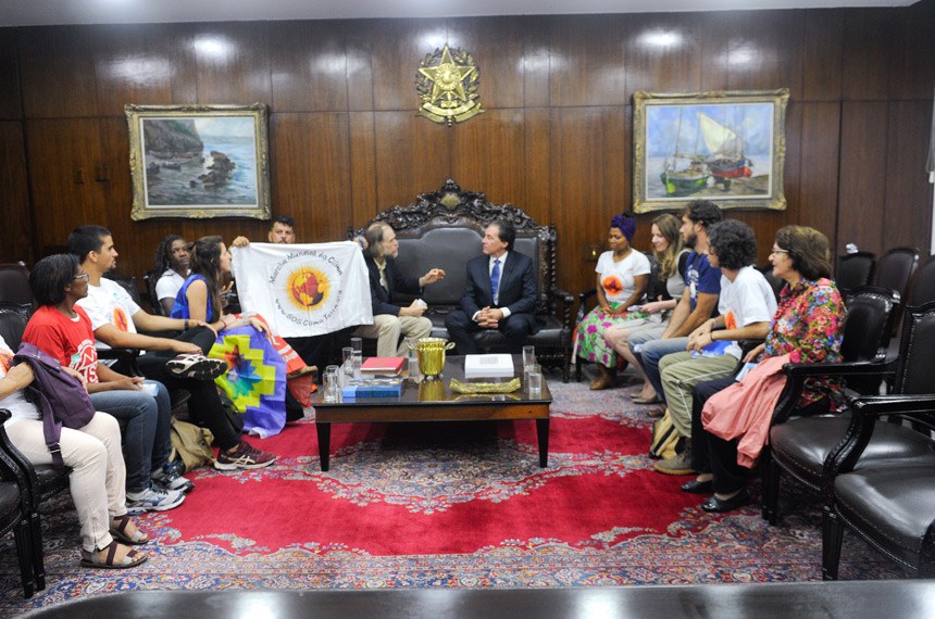 O presidente do Senado, Eunício Oliveira, recebeu nesta quarta-feira (1º) representantes da Marcha Mundial do Clima realizada todos os anos simultaneamente em 100 países com o objetivo de chamar a atenção da população e dos governantes para a questão das mudanças climáticas. No encontro, Eunício ouviu dados alarmantes sobre a situação do clima no mundo.
