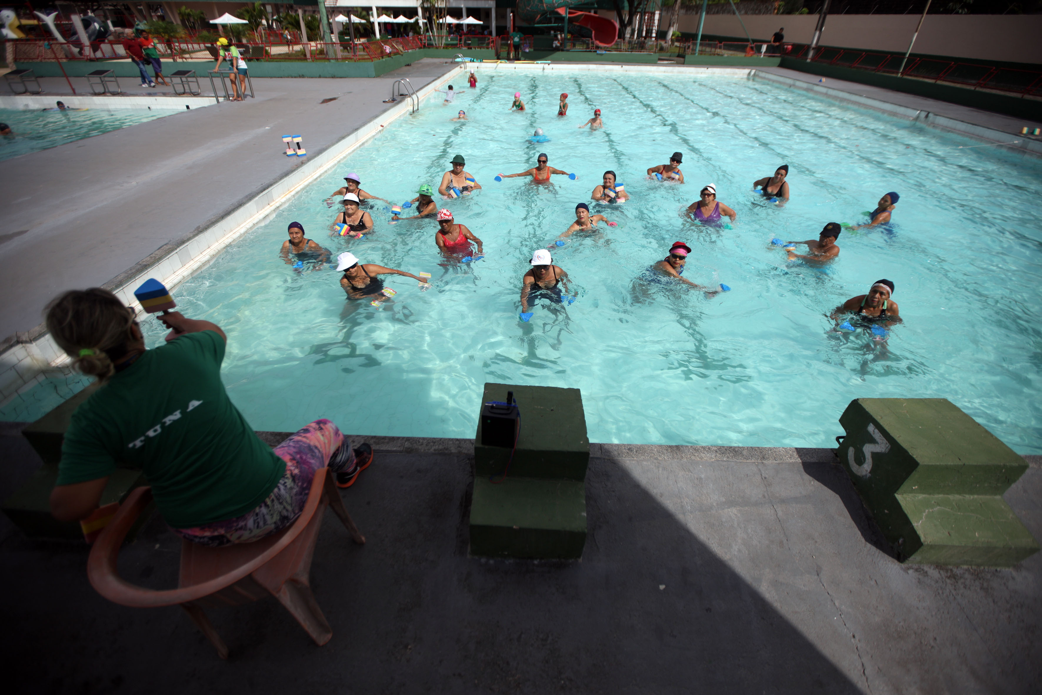 Pedalada de macarrão, caminhada aquática, nado com prancha, nado livre, prova de salão dominó e dama.