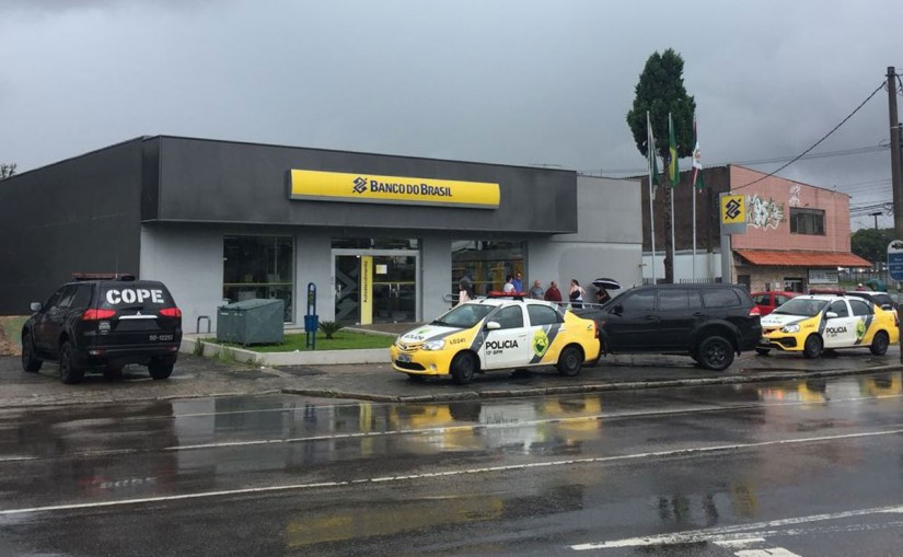 Cinco bandidos armados e encapuzados invadiram uma agência do Banco do Brasil localizada na Avenida Brasília, no bairro Novo Mundo, em Curitiba, no final da manhã desta sexta-feira (12), por volta das 11h30. A ação durou apenas dois minutos mas assustou quem estava no local. Foi o segundo assalto a banco na capital só nesta sexta.