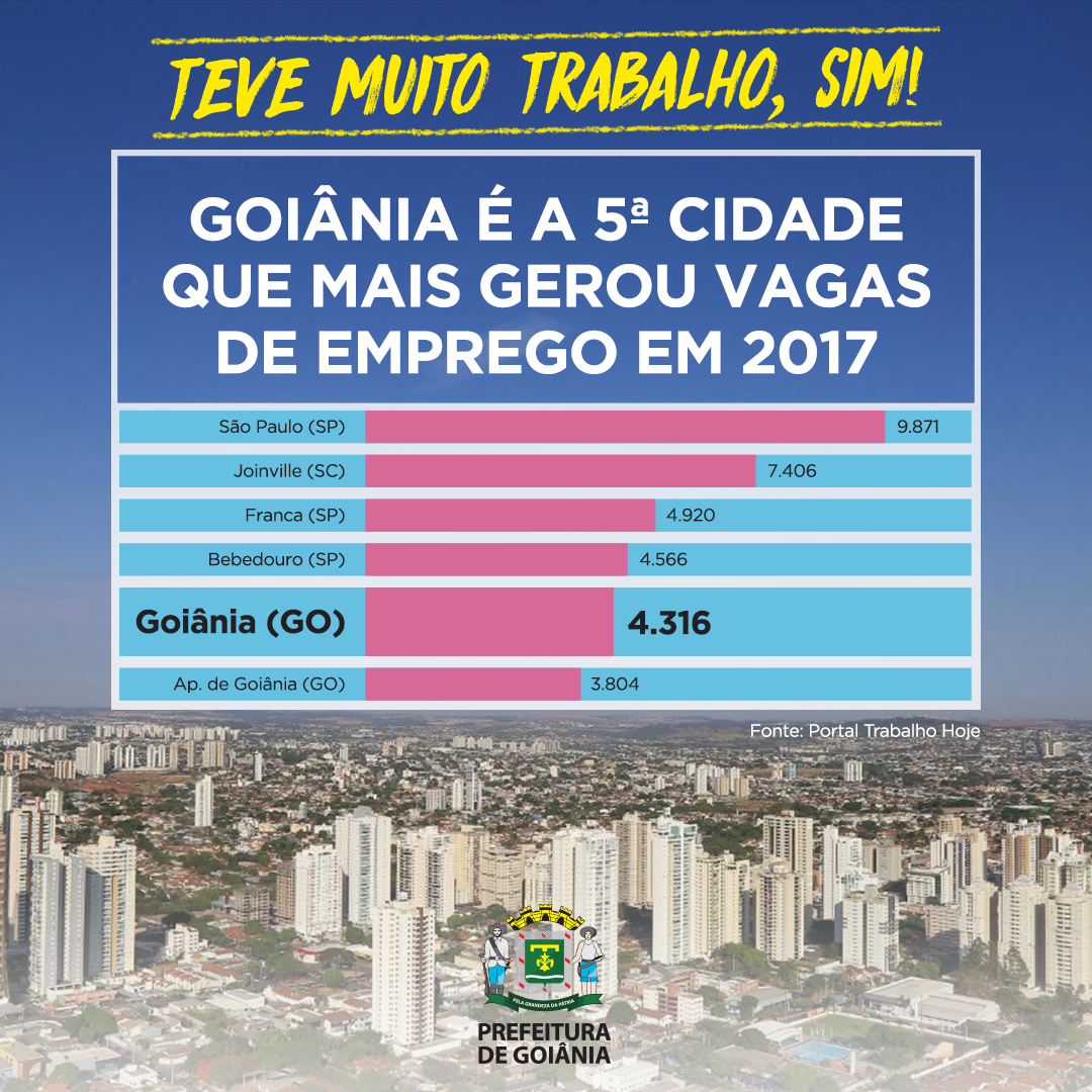 A modernização trazida pela nova gestão da Prefeitura de Goiânia surtiu efeitos em 2017 e contribuiu para a geração de 4.316 novos postos de trabalho. Goiânia foi a segunda capital na geração de vagas no país, atrás apenas de São Paulo, e a quinta melhor dentre todas as cidades pesquisadas.