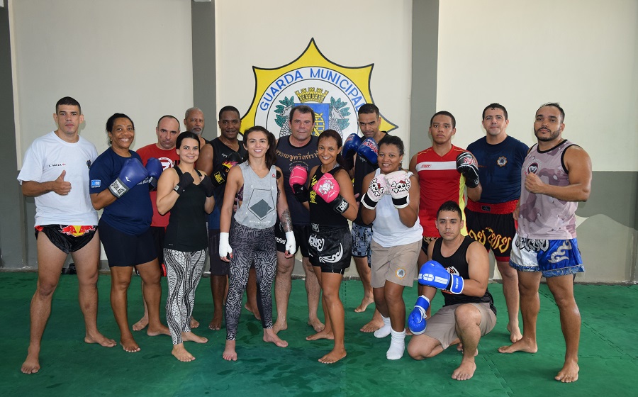 Após a aula, Claudia, que é oriunda do Jiu-jítsu, ainda participou de um treino com os guardas municipais Anderson Musgo, professor do projeto e mestre de Muay Thai com diversos títulos nacionais e internacionais, e Tadeu Pinheiro, que também é atleta da modalidade. As técnicas de Muay Thai estão ficando cada vez mais populares no Brasil e são um diferencial também nas competições de MMA, devido às características da luta, que combina técnicas e forças de diversos membros do corpo humano, como punhos, cotovelos, canelas, pernas e joelhos.