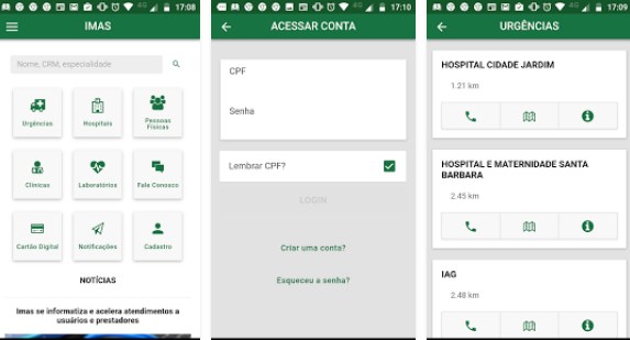 Na tela principal do aplicativo, o usuário terá acesso à lista de prestadores que atendem em caráter de urgência, hospitais, médicos, clínicas e laboratórios credenciados pelo plano de saúde municipal. Com apenas um clique, o interessado tem acesso ao telefone e localização do prestador, inclusive informações da rota para se chegar ao consultório ou hospital escolhido.