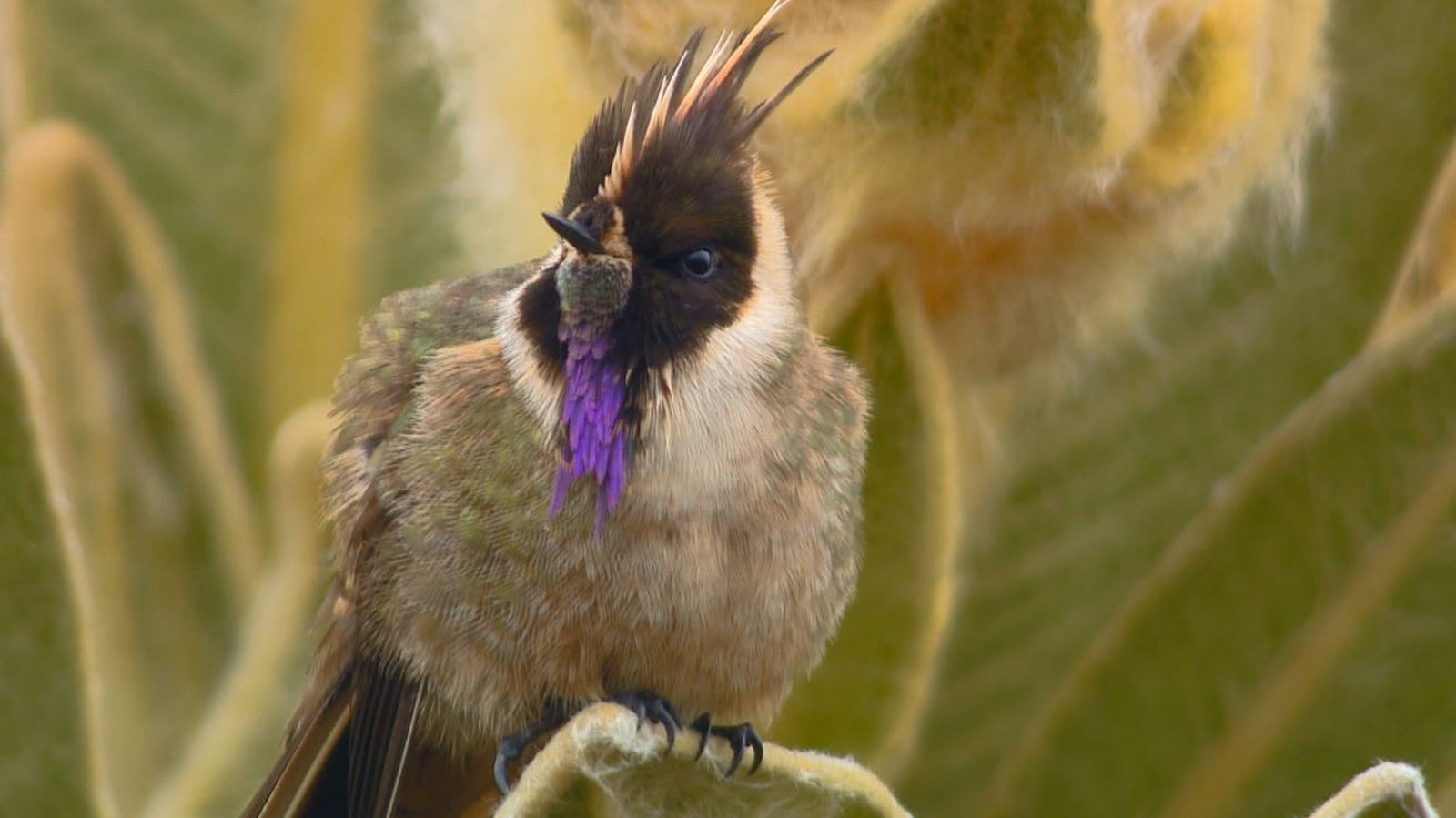 Nos bosques andinos, equipe de Terra da Gente filma o bico-de-espada, beija-flor que tem o bico maior que o corpo.