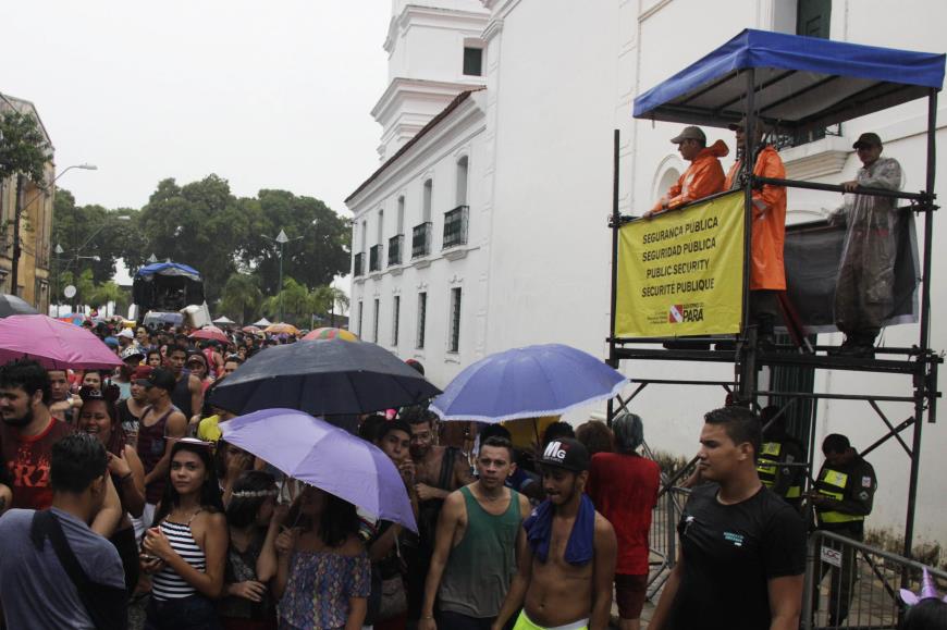 Foliões cheios de empolgação não cederam ao período de inverno amazônico, e as chuvas intensas, da tarde deste sábado (27), refrescaram os brincantes que se divertiram fantasiados ou vestidos com abadas, no pré-carnaval do bairro da Cidade Velha. Toda a alegria pôde ser usufruída com tranquilidade, devido a atuação do esquema operacional montado pela Secretaria de Estado de Segurança Pública e Defesa Social (Segup).