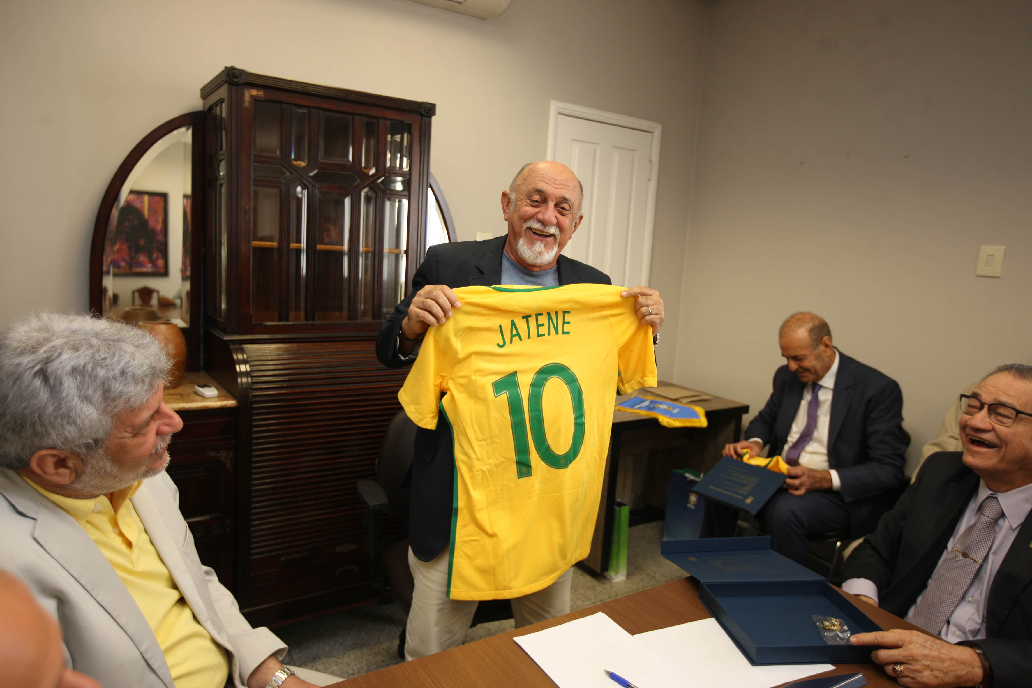 Ao final do encontro, o governador Simão Jatene e a secretária de Esportes, Renilce Nicodemos, receberam uma medalha que simboliza as conquistas da seleção brasileira, como o primeiro lugar nas eliminatórias na Sulamericana e o primeiro país a se classificar para a Copa do Mundo, uma flâmula e uma camisa personalizada da Seleção Brasileira.