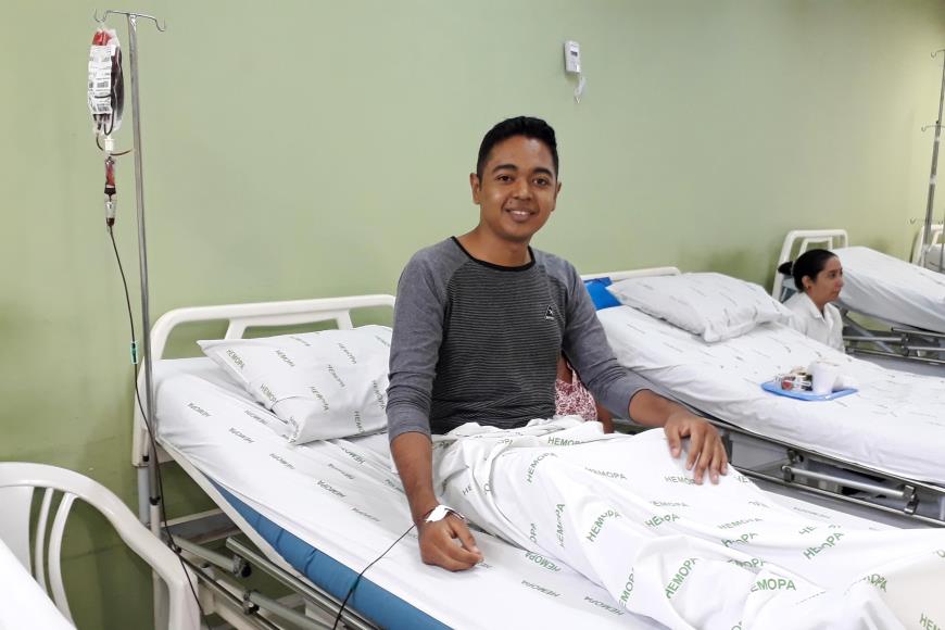 Aos 21 anos, Seije Matheus estuda e faz planos como qualquer outro jovem de sua idade. Mas um detalhe o torna diferente dos demais: toda semana ele precisa fazer transfusão na Fundação Centro de Hemoterapia e Hematologia do Pará (Hemopa), em Belém. Há dois anos, Seije foi diagnosticado com aplasia medular, condição rara em que o organismo deixa de produzir quantidade suficiente de células sanguíneas novas. “Meu remédio depende da solidariedade das pessoas. Minha vida depende disso. É preciso esclarecer dúvidas e tabus para que mais pessoas doem sangue”, ressalta o jovem.