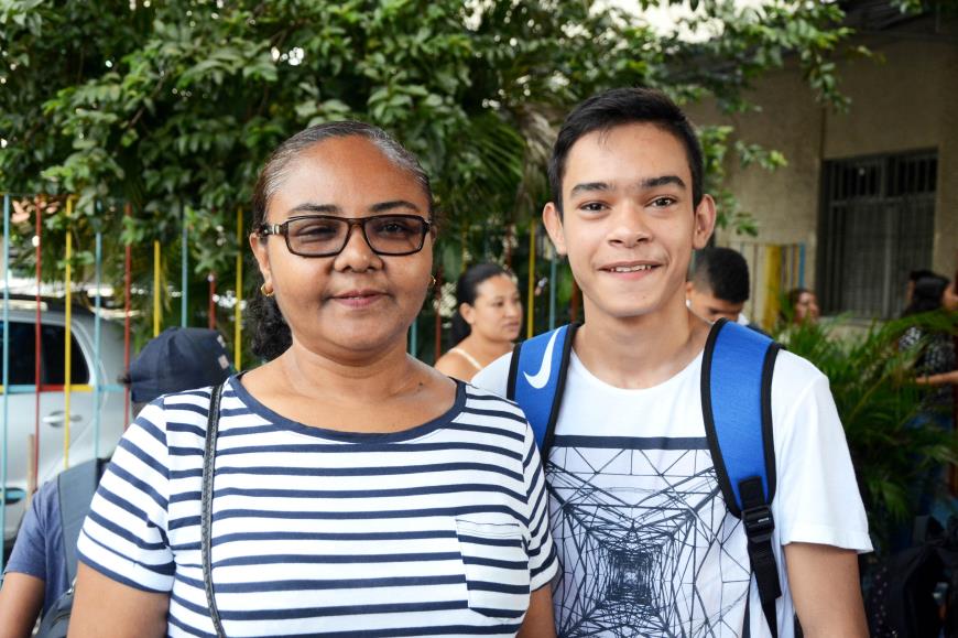 A professora Ester Sá fez questão de acompanhar o primo César Sá, de 15 anos, ao seu primeiro dia de aula. O rapaz, que concluiu o Ensino Fundamental numa outra escola, disse à família que, no Ensino Médio, gostaria de ter ensino em Tempo Integral. “Nós ficamos até um pouco surpresos com a resolução dele, mas logo decidimos acatar e procurar outra escola. Ouvimos coisas muito boas sobre a Ulysses Guimarães e, por isso, hoje, estamos aqui”, contou a professora. “Eu achei que seria melhor pra mim, ter um tempo maior de estudo e já começar a me preparar para o Enem (Exame Nacional do Ensino Médio)”, completou o aluno.