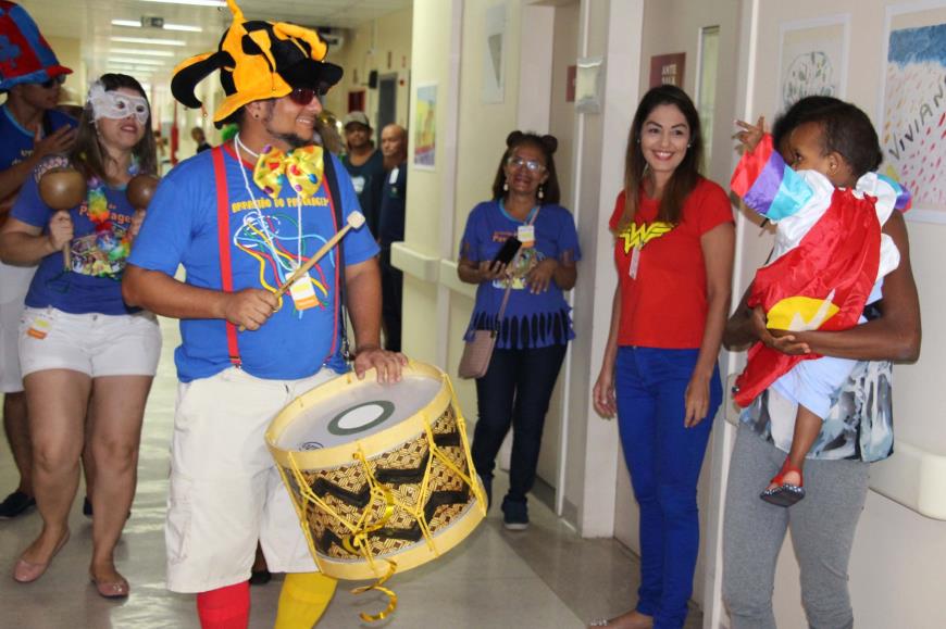 Super-homem, Mulher-maravilha, Homem-aranha, a dupla Luigi e Mário. Esses e outros personagens que distraem as crianças em tratamento no Oncológico Infantil, seja na cabeceira da cama ou no videogame, também estiveram no Baile de Carnaval da unidade.