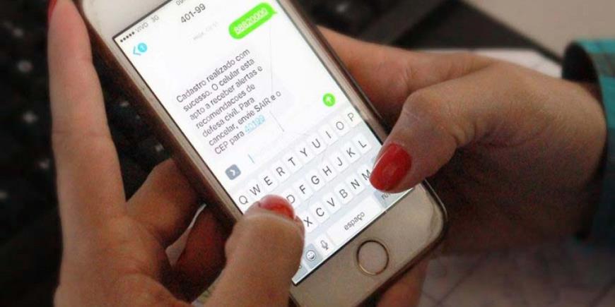 A mensagem, a ser emitida sobre o envio de SMS, segue o seguinte modelo: “Defesa Civil informa: novo serviço de envio de SMS gratuito de alertas de riscos de desastres. Para se cadastrar responda para 40199 com CEP de interesse”.
