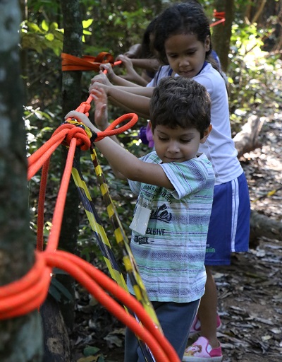 As atividades acontecem de forma lúdica, nas quais os alunos percorrem trilhas dentro do Jardim Botânico, passando por obstáculos como slackline, falsa baiana, túnel e pneus, de forma que a interação com a natureza e o senso de preservação ambiental sejam aflorados nas crianças.