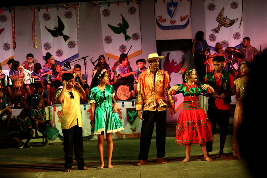 Cerca de 160 crianças que participaram das oficinas de iniciação artística, artes cênicas e música das Oficinas Curro Velho apresentaram sexta-feira, 15, números de música, dança e teatro no Arraial de Todos os Santos. Foram encenados os espetáculos Lucinda e Januário - a paixão nos Pássaros Tem-Tem e Jataí e o Auto da Lua Crescente, além dos resultados da oficina música Boi-Bumbá para São João e Coletivo Amazônico. A encerrou no anfiteatro às margens do rio Guamá com o show do Mestre do Caribó, Pinduca. “Foi um show alegre em que interagi com o público e mostrei músicas renovadas”, comemorou Pinduca.