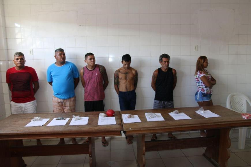Foram presos José Sonis do Rosário Cunha, 51 anos, Madson Alex Santana da Conceição, de 27, Paulo Rodrigo Cavalcante Mesquita, 21, Wagner Souza Oliveira, 32, Emerson Douglas Corrêa Monteiro, 23, Maxney Magalhães Reis, 33, Adriele de Cássia de Nascimento Macapuna, 25, Eles foram levados para a Delegacia de Salinas, onde foram autuados no artigo 33 do Código Penal, por tráfico de drogas, e estão à disposição da justiça.