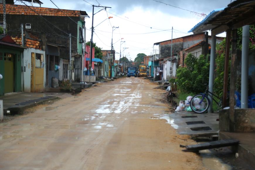 Além das frentes de trabalho para drenagem e pavimentação em diversas ruas e avenidas, a Prefeitura de Belém avança também com obras de terraplenagem para melhorar a condição de vias que ainda não possuem asfalto.
