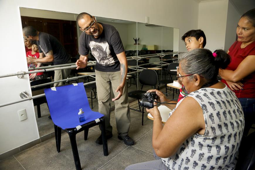 Aos 17 anos, o adolescente Carlos Vinícius Leão Ramos chegou à oficina por curiosidade e agora está descobrindo o potencial da atividade de fotógrafo. Pensando na rua onde mora, quer mostrar o prédio de um asilo que antes existia na área e a fotografia será a ferramenta que pretende usar para falar sobre o assunto. “Eu aprendi as técnicas e isso ajuda a melhorar o trabalho”, avaliou o adolescente, após alguns exercícios fotográficos durante a oficina.