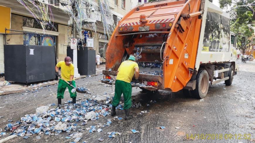 Limpeza – Após a passagem dos romeiros na trasladação e procissão do Círio de Nazaré, mais de mil agentes da Prefeitura de Belém responsáveis pela limpeza do percurso entram em ação. O trabalho de varrição e lavagem das vias teve a participação de 280 catadores de materiais recicláveis que recebem apoio da Prefeitura. Materiais como plásticos e papelão eram separados para caminhões específicos e destinados para reciclagem. O lixo que não possui valor econômico foi compactado e destinado para o aterro sanitário em Marituba.