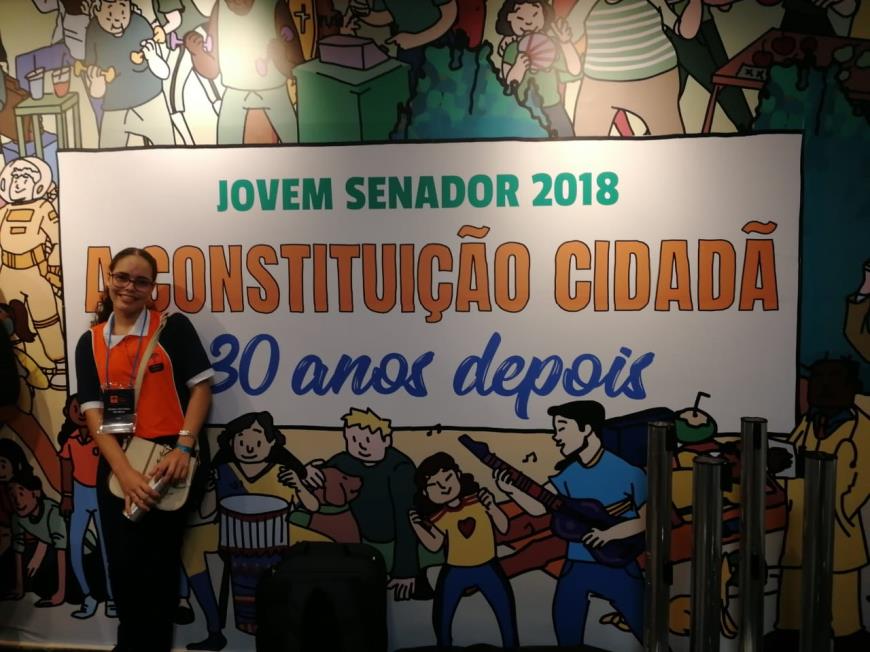 Luana Coutinho da Silva, estudante do 2º ano do ensino médio na Escola Estadual de Ensino Fundamental e Médio Cônego Calado, no município de Igarapé-Açu, nordeste do Pará, conquistou o 3º lugar na classificação nacional do Projeto Jovem Senador 2018, que visa estimular entre estudantes do ensino médio, com até 19 anos e regularmente matriculados nas escolas públicas dos estados e do Distrito Federal, a reflexão sobre política, democracia e exercício da cidadania.