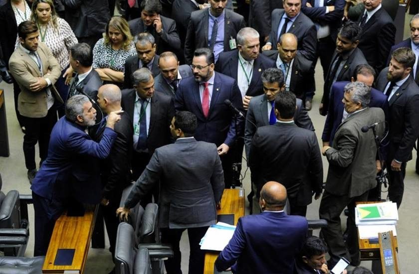 Integrantes da Frente Parlamentar da Segurança Pública do Congresso Nacional, os deputados federais Alberto Fraga (DEM-DF) e Laerte Bessa (PR-DF) trocaram empurrões no plenário da Câmara durante a sessão desta segunda-feira (12/11). Os ânimos se alteraram após o democrata criticar, da tribuna da Casa, a decisão do governador eleito do DF, Ibaneis Rocha (MDB), de extinguir a Casa Militar do DF e criar o Gabinete de Segurança Institucional (GSI) para ser ocupado por Bessa. “Ideia de jumento“, afirmou Fraga.