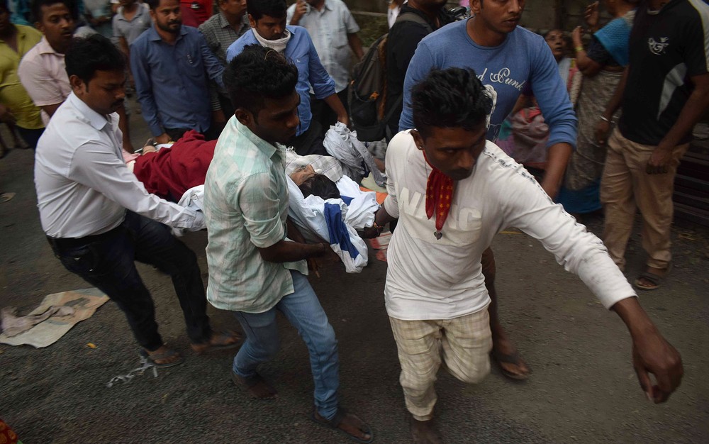 Pessoas carregam sobrevivente após incêndio no hospital ESIC Kamgar, em Mumbai, na Índia, na segunda-feira (17) — Foto: AFP