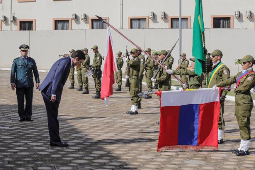 Após a revista à tropa, Helder e Sebastião Miranda se dirigiram até à tribuna, onde discursaram. O prefeito, em sua fala, fez um reconhecimento público ao trabalho do governador Helder Barbalho, quando esteve a frente do Ministério da Integração Nacional.