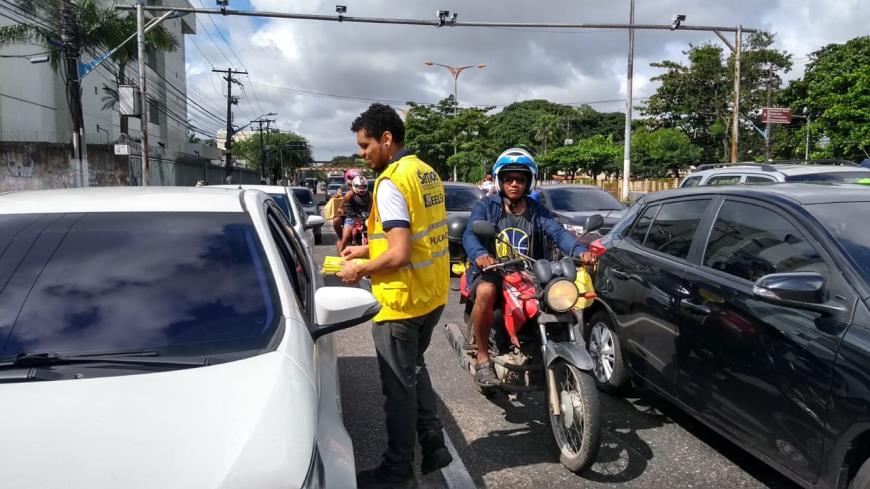Na manhã deste sábado, 02, agentes educadores da Superintendência Executiva de Mobilidade Urbana de Belém (SeMOB) estiveram no cruzamento das avenidas Almirante Barroso com a Tavares Bastos para orientar condutores que estavam saindo de Belém.