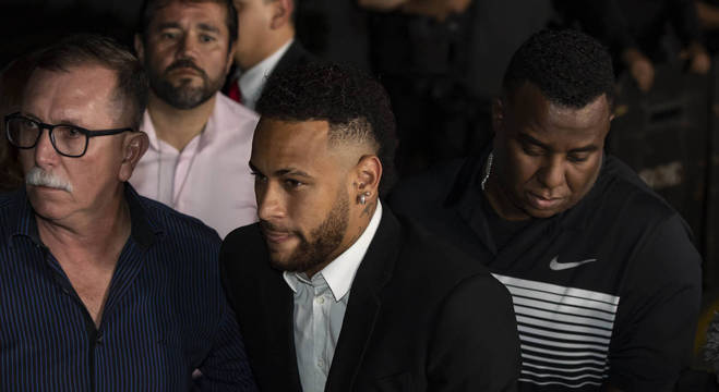 Na saída da delegacia, Neymar fez uma breve declaração à imprensa. De muletas, acompanhado de advogados e cercado por policiais do GOE (Grupo de Operações Especiais) da Polícia Civil, o atacante demonstrou confiança em provar a inocência.