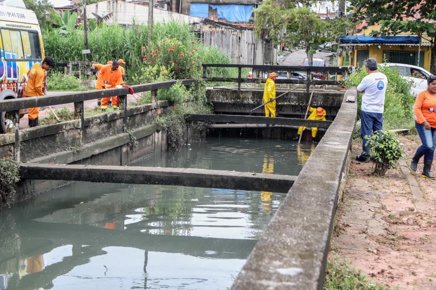 Ações - A Prefeitura de Belém continua prestando atendimento às áreas com alagamentos na cidade. Equipes da Sesan estão atuando no Conjunto Promorar com limpeza da rede de drenagem e obras para escoamento da água da chuva. Também na Bernardo Sayão, entre Mundurucus e Caripunas, estão sendo realizadas ações de limpeza e dragagem do canal, bem como atendimento social a moradores da área. Os canais Tucunduba, Cabanagem, Val-de-Cans (dentro do terreno da Marinha), Canal Una 2 (que atravessa os bairros Mangueirão, Cabanagem e Una), além da parte baixa do bairro do Marco continuarão a receber ações de limpeza esta semana.