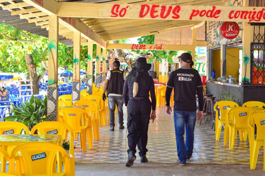 Durante todo o sábado, 18, a Prefeitura de Belém por meio da Ordem Pública atuou nas praias do Distrito de Outeiro fiscalizando os estabelecimentos quanto ao cumprimento dos protocolos sanitários descritos no Decreto Municipal n. 96.699 de 8 de julho de 2020, que determina normas para o combate à proliferação da Covid-19 nos balneários e praias da capital.